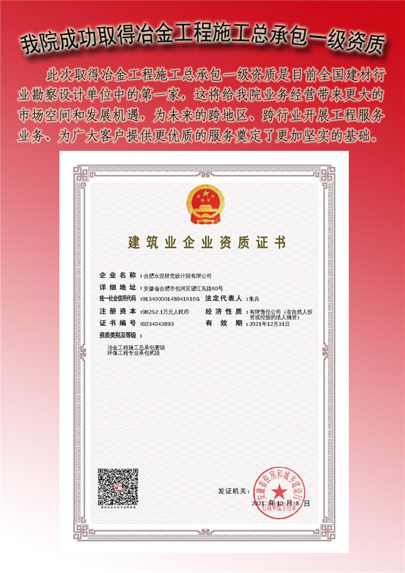 您好,歡迎訪問合肥水泥研究設計院有限公司!